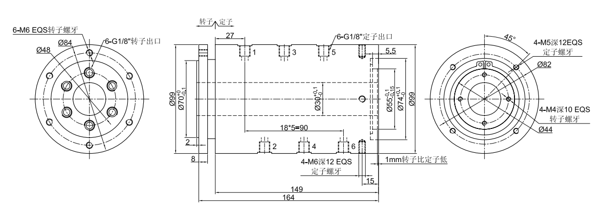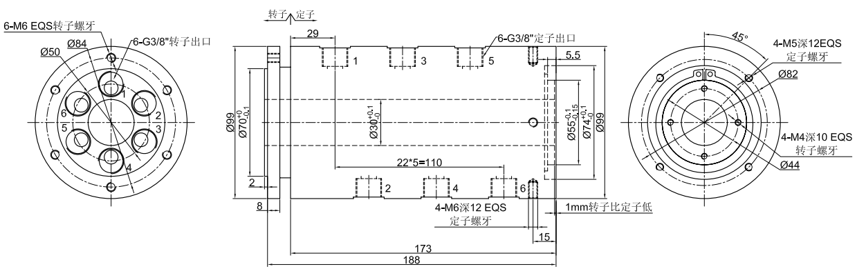 GJ6030系列 (中空30mm, 6進(jìn)6出, 中空氣液旋轉(zhuǎn)接頭,氣滑環(huán),液壓滑環(huán))