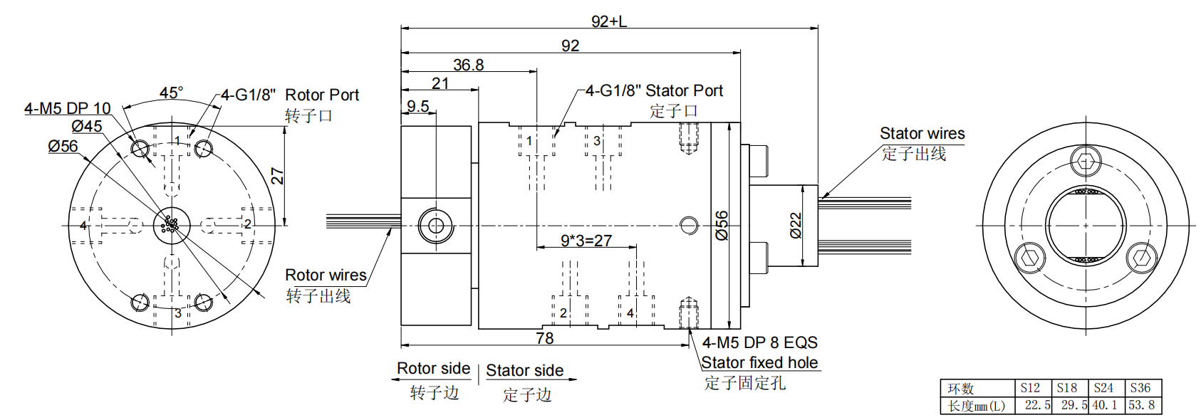 此款氣動(dòng)旋轉(zhuǎn)接頭是一款扭力小,性價(jià)比超高的旋轉(zhuǎn)接頭(也叫氣滑環(huán)或者氣電), 速度最大可達(dá)600RPM, 可單獨(dú)傳輸壓縮空氣,真空負(fù)壓的同時(shí),也同時(shí)能夠傳輸電源信號(hào),主要應(yīng)用于360度連續(xù)旋轉(zhuǎn)且需要保證氣壓,真空,電源,信號(hào)不能中斷的場(chǎng)合:如各種自動(dòng)化非標(biāo)設(shè)備,鋰電池設(shè)備,手機(jī)測(cè)試設(shè)備,手機(jī)高端裝備設(shè)備,各種激光設(shè)備,涂布機(jī) 、涂覆隔膜設(shè)備 、軟包電池用包裝膜設(shè)備,邦定設(shè)備 、貼合設(shè)備,電子半導(dǎo)體工業(yè)自動(dòng)化設(shè)備;光電平板顯示(LCD/LCM/TP/OLED/PDP)工業(yè)自動(dòng)化設(shè)備、檢測(cè)設(shè)備、其他自動(dòng)化非標(biāo)專業(yè)設(shè)備等等。